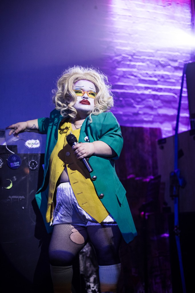 Artists featured at Miss E have included Paulina Lenoir, Orion Isaacs, Niall Moorjani, Ayoade Bamgboye, Midgitte Bardot, Sue Gives a Fuck, Sami Abu Wardeh, Sadie Sinner, Virgin X, Ella the Great, The Easy Ryan Mile High Club, Aiden Strickland, Cabbage the Clown, Tom Coates, Lachlan Werner, Pink Suits, Dairy King, Liv Ello, Liv Wynter, Julia Masli, Lilly Snatchdragon, Nikita Gil, The PUF, Posey Mehta, Patricia Langa, XO, Riwa Saab, Dr Phoebe Patey Ferguson, Yael Elshiva, Laila Woozeer, Secretariat, Sweet FA, Evelyn Carnate, Daddy Maki, The Doll, Mx Fortune, Pink Lotus, Gemma Brockis, The Hotter Project, Kit Khan, an0male, Porscha Present, Dre Spisto, Vic Diamente, Eloina Haynes, Egon Centrik, Kaajel Patel, Jack Boal, John-Luke Roberts, Thick and Tight, Tim Spooner, Holly Miller, King of More, Dad, Salad Bag, Anna Marie Simonsen, Vodka Terry, Alice Cockayne, Sara Segovia, Rosy Pendleberry, Moonface, Em Tanner, Tu Pham, Poor Mother, Freddie Hayes, Gina Coladas, Watcha, DJ TK Maxxine, Julian Konuk, Cloud Islay, Pitbull and inevitably more…