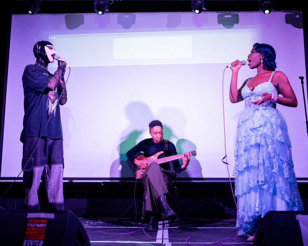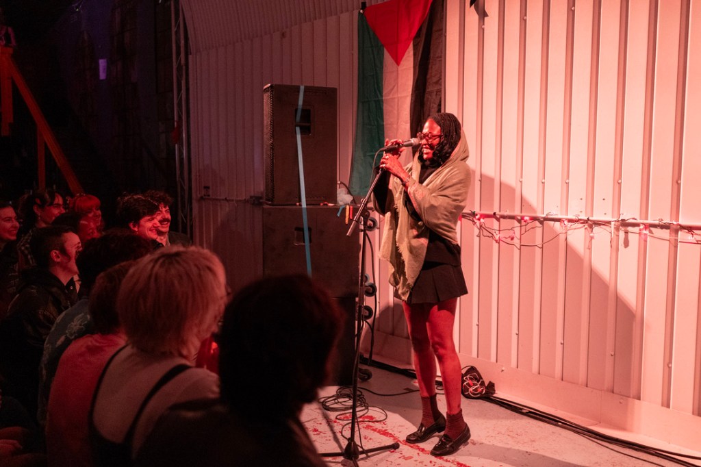 In 2024 and 2025 Miss E joined forces with iconic London drag/queer nights Drag Down the Borders and Panic at the Drag Show along with Queer House Party (2024) and Bledi Party (2025) to put on a massive queer performance night on the date of the Eurovision Final to provide an alternative pro Palestinian event and fundraiser for those wanting to Boycott Eurovision’s inclusion of Israel. Both years featured speakers from groups including Queers for Palestine, Fossil Free Pride as well as dozens of performers and DJs. Both nights raised thousands for the PCRF, Operation Olive Branch and many other individual fundraisers and charities fighting for the rights and well being of the Palestinian people.