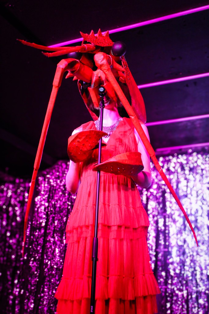 Lobster Girlfriend is a regularly performed cabaret piece I do in which I sing a slightly edited version of ‘I Want to Be Your Girlfriend’ by Ezra Furman but as a lobster prom queen who wants to be your lobster girlfriend. This act was initally made for Miss Ellaneous and has been performed at The Southbank Centre, The Divine, VFD, Wilderness Festival, The Piehouse Cooperative and many more venues. Photos by James Klug and Emily Butler Moor