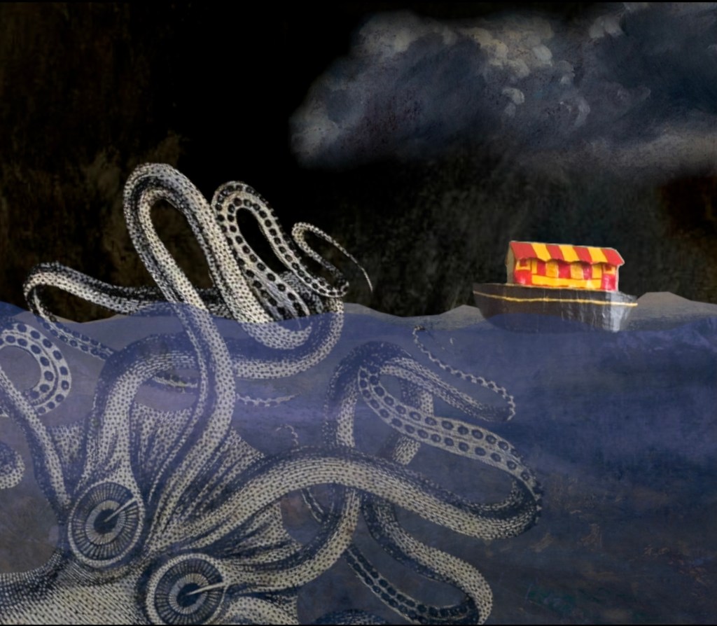 The Madness of the Heart was a solo show I created and was performed once on Halloween 2022 on The Puppet Barge. It was a collection of some of my previous pieces of work along with a few new songs (Including The Cannibal song, Vacuum Decay and The Tenneesee Tomboy and the Gold Dust Girl). The show was a guided trip across the Styx to the underworld and considering the different worlds of failed love and heartbreak along the way whilst an unknown horror lurks in the depths. I was accompanied by the ever talented Mal J and Josh Middleton.