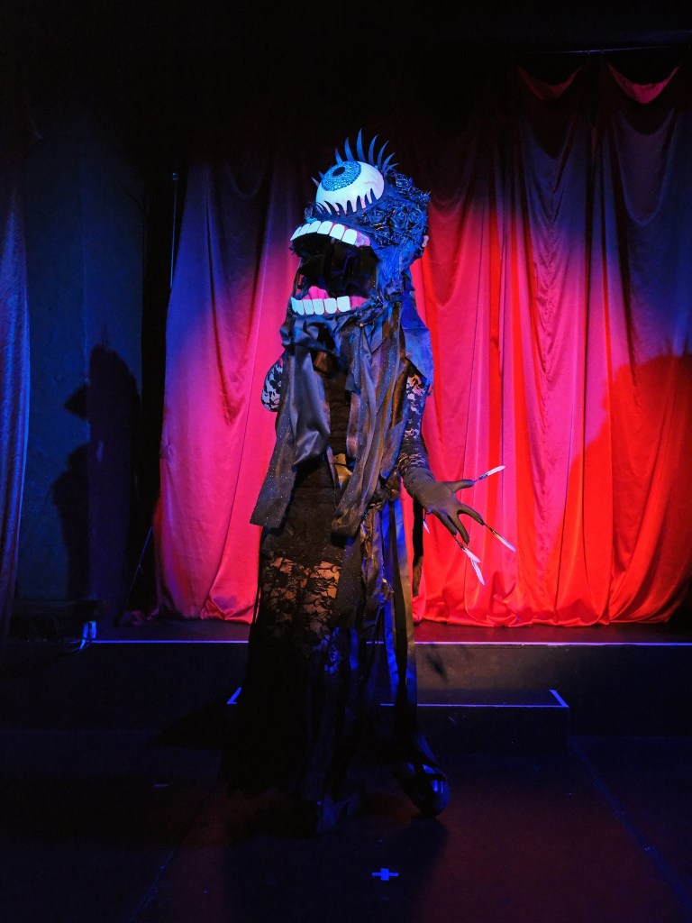 The Tar Monster was a costume and act developed for a Scooby Doo themed drag night hosted by Ham It Up productions and performed at The Royal Vauxhall Tavern and The Clapham Grand. I was commissioned to be one of the masked monsters and I chose the Tar Monster from the early seasons of Scooby Doo. I did a Lipsync to Florence and the Machine’s ‘Girl With One Eye’ with a mask I made with a movable jaw. I was unmasked later in the show to reveal I was in fact JK Rowling. Photos by Harry Elletson and Jenny Forward-Hayter