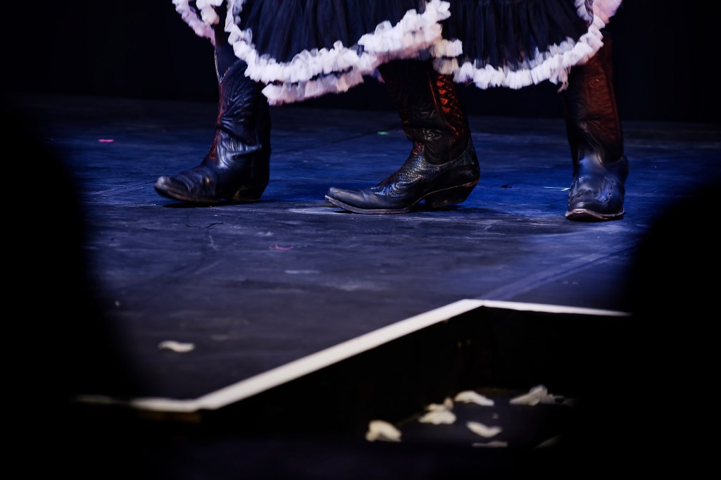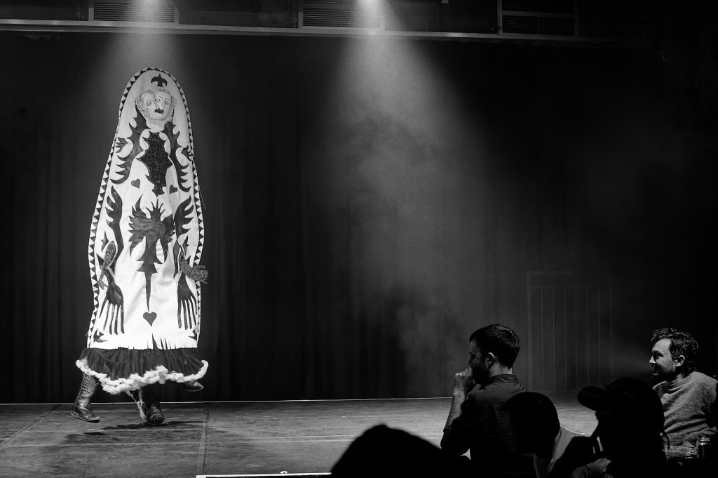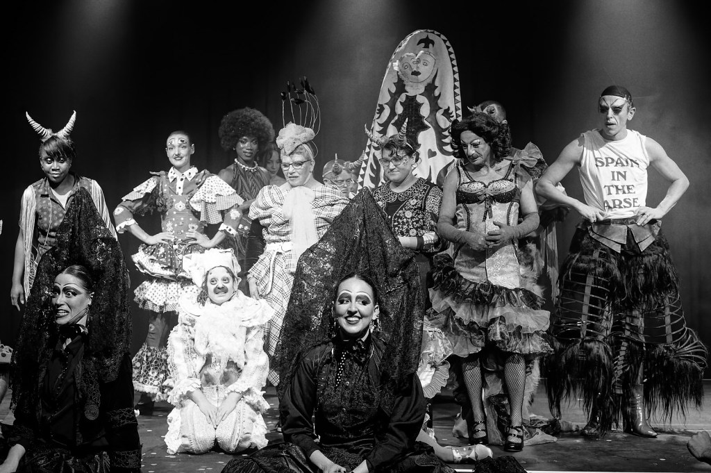 Cabrolé was a project produced by Eric Longa Company and directed by Pat Langa and originally performed at Stanley Arts Centre in which a series of cabaret artists working in different mediums developed a new piece in conversation with the world of flamenco and queer Spanish culture. My piece was based around an imagined queer deity based on the poems of Lorca. It was the Saint of Odd Numbers with an act that focussed on connecting different generations of queer political struggle and featuring different versions both of the disco classic ‘I Will Survive’. Costume designed by me and built by Lambdog. Photos by Jon Archdeacon.