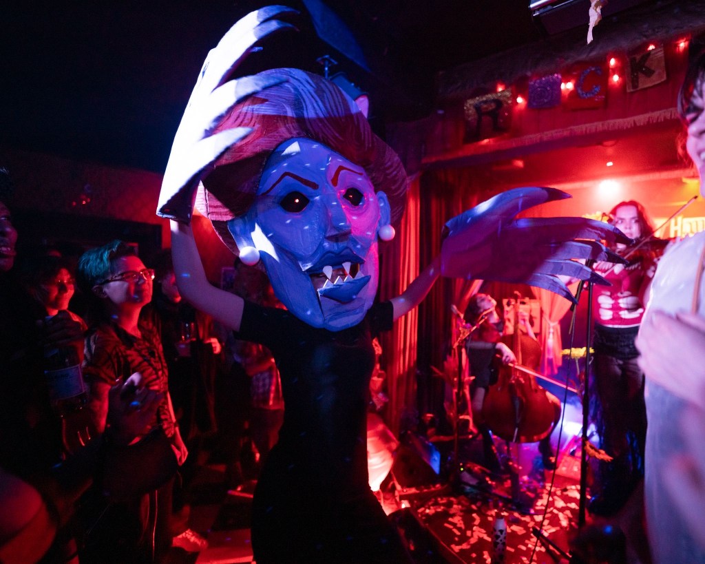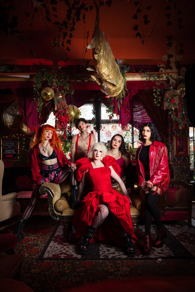 THWACK! is a London punk band made up of Charlie Wood (vocals, guitar), Chlo Spinks (bass, vocals), Mal (cello, vocals), Blake Shortt (drums) and Natalia Gruca (violin). They are London’s foremost string-infused punk rock imagineers who have been captivating audiences with their theatrical live shows and killer tracks. Between releasing their ‘bold and thoroughly intoxicating’ debut EP ‘BURIED BUT BLOOMING’, winning multiple band competitions and creating viral music videos – THWACK! have brought their orchestral-genrequeer-originality to an ever-growing list of iconic festivals and venues including Glastonbury, Wilderness, Shambala, Trans Pride and just about every grassroots venue in The capital and beyond. An 8-foot zombie Maggie Thatcher, riot grrrl screamalongs, seductive string harmonies, redemptive angels, queer rage, long lists, tenderness, shenanigans – find all this and more at the next THWACK! show…